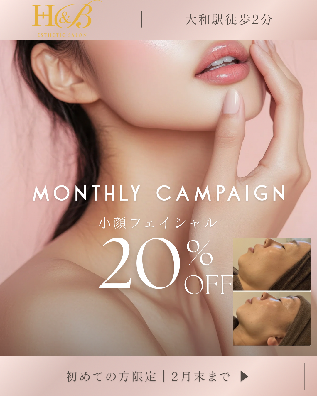 こんにちは。大和駅から徒歩2分のエステティックH&B大和店です。